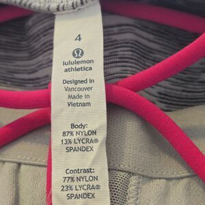Preloved - Like new condition - MEASUREMENTS: chest 24 in, length 22.5 in. Material 87% Nylon, 13% Lycra Spandex. This Lululemon tank has pink spaghetti straps and a built-in bra with padding.