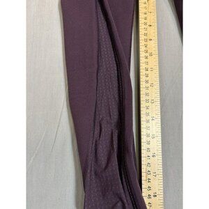 This is a pair of Lululemon leggings in size 6 for women. They are designed with mesh side panels and pockets, perfect for activewear use. The leggings come in a stylish purple color with an ankle-length cut and features compression around the legs. Made from mesh fabric, these leggings offer both functionality and style for your workouts.