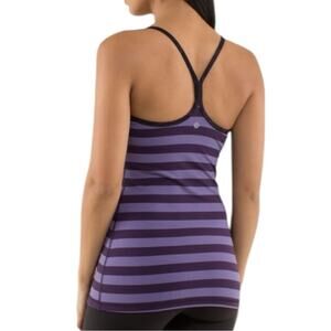 Lululemon Size 6 Micro Macro Stripe Deep Zinfandel Purple Black Power Y Tank Top