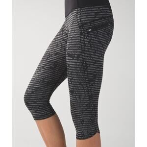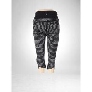 Lululemon Size 6 Womens Run Top Speed Crop Leggings Black Gray Stripe Leaf