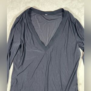 Lululemon Size 8 Back in Action Black Deep V Performance Long Sleeve Shirt ALO