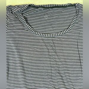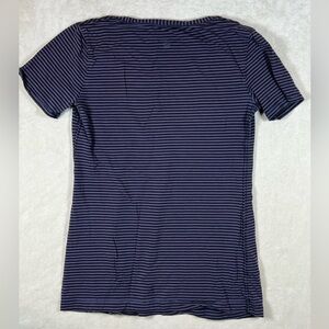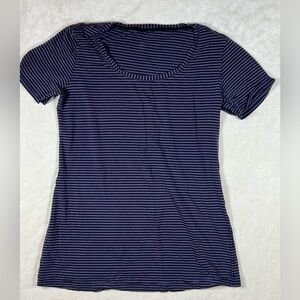 Lululemon Size 8 Classic Scoop Hoop Neck Purple Black Stripe Shirt EUC ALO Lulu