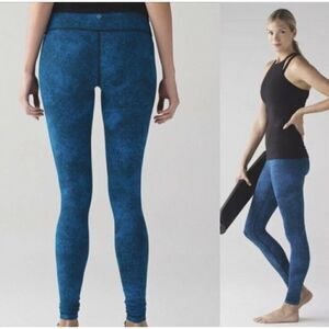 Lululemon Size 10 Luon Spray Jacquard Shocking Blue Black Wunder Under Pant III.