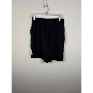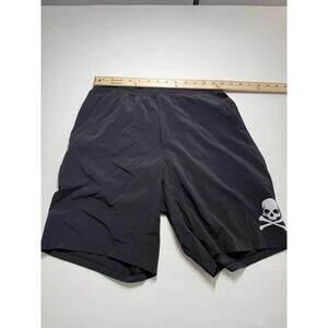 The Lululemon Skull Pace Breaker Out Of Mind Liner 9" Black Size Medium Stretch shorts are made of the Swift Ultra fabric, featuring a stretch fit for comfort during active wear. With an elastic and drawstring closure, these athletic shorts are designed for gym and training activities with a moderate compression level in the waist area. The black color and solid pattern make them versatile for all seasons. Perfect for men who value style and functionality in their activewear wardrobe, these Lululemon shorts are a great choice for those looking for a blend of performance and fashion.