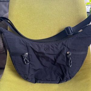 Black Lululemon sling bag 6L. Bought it new and used it for about a week and realized I just love a bigger bag. It has a TON of pockets and zippers and can expand to be a crossbody bag. Great purse if you’re looking for something a little bigger than the belt bag. No rips or tears. In great shape still! Lots of life!