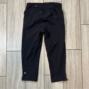 Lululemon Smooth Stride Crop Leggings. Mesh and scalloped sides. Black. Size 4
