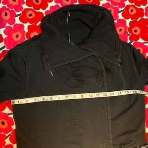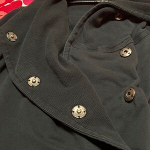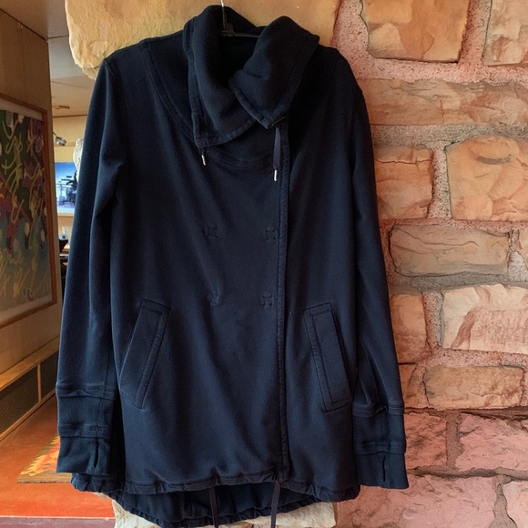 Black Lululemon snap front cotton jacket w thumb slots. Measurements on photos. Lightweight for spring.