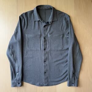 Lululemon Snap Shirt M Blue Gray Casual Golf Button Up Gridliner Minimalist