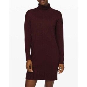 Lululemon Softer Still Cashmere Blend Turtleneck Sweater Dress Garnet Sz M Black