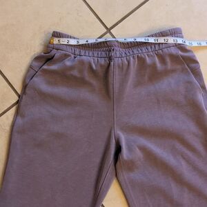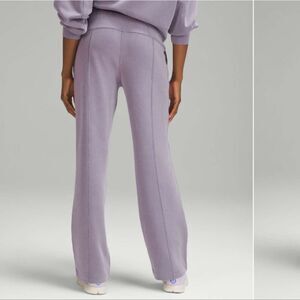 Lululemon Softreme High Rise Pant Lavender Purple Ash Size 8. In excellent condition no rips or stains. Little to no pilling. One spot of wear near pocket shown in closet picture. Please see measurements pictures to be sure of fit. Length: 41in Inseam: 30in Retail: $128