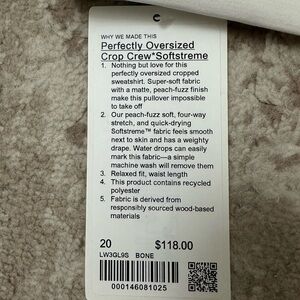 Lululemon Softstreme Perfectly Oversized Cropped Crew Size 20 NWT - Bone