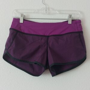 Lululemon Speed Short 2.5”. Gingham checkered print in purple with black. 2 internal pockets at waist and 1 back zippered pocket. Excellent condition, no flaws.