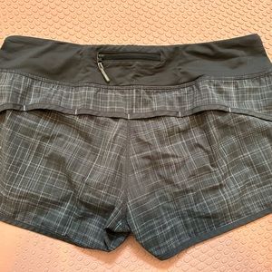 Original style Lululemon Speed Short! The cut on these at the time was different (those who know, know!). Grey/lavender plaid. Sz 8. Very good used condition. Some piling on the waistband (mostly on the inner waist band).