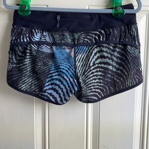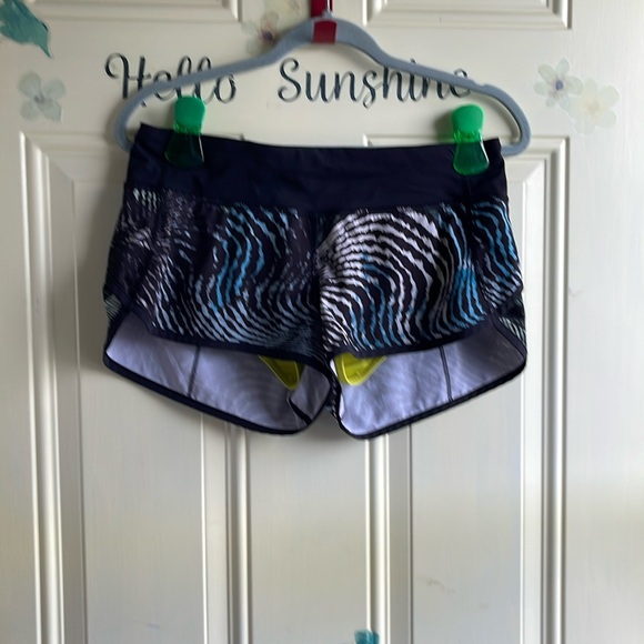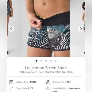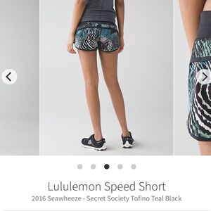 Lululemon Speed Short Special Edition Seawheeze 2016 color Secret Society Tofino Teal Black size 6 in very good condition with zipper pocket in back and draw string