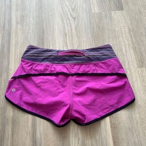 Lululemon Speed Short Ultra Violet / Space Dye Twist Ultra Violet Multi. Size 6. Stay comfortable and stylish with these vibrant purple athletic shorts. Perfect for workouts or casual wear.
