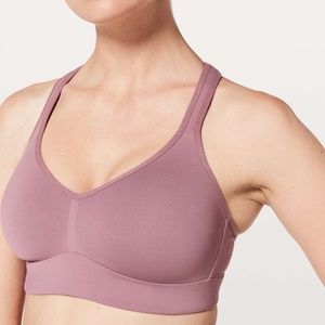 Like new condition Lululemon Speed Up Bra Size 4 in Figue (mauve purple / pink). Only used once or twice, like new. Not stretched out, no flaws.