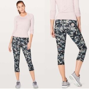 Lululemon Speed Up Crop 21" Pockets Luxtreme Blue Spring Bloom Multi Size 4