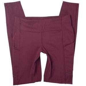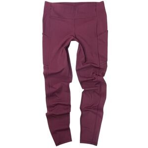 athletic wear, gym leggings, yoga pants, lululemon size 6, plum leggings, full length, training tights, reflective detail, zip pocket, running leggings, compression tights, workout wear