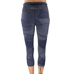 Lululemon Speed Up Women's Blue Striped Crop Yoga Athletic Leggings Pants Size 6