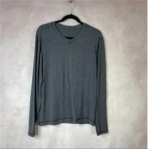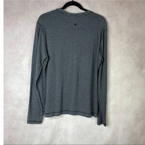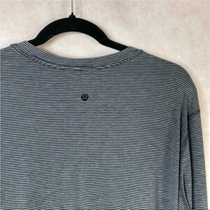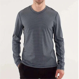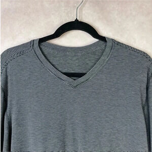 Lululemon Speed mens tee in black gray and white smallish stripe. V neck. Long sleeves. Chest 20” length 26” Excellent condition. Size M
