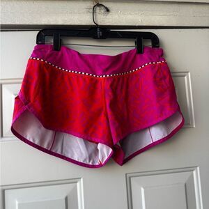 Lululemon Speed Short 2015 Seawheeze - Fuschia with Red Squiggles Size 10