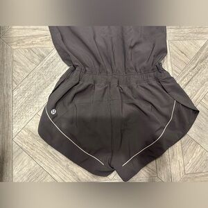 Lululemon Speedy Runsie romper in a dark gray color made with Swift Ultra Light fabric. Size isn’t on romper anymore but I am personally a size small and it fits me but is getting a little snug so i’m gonna say it fits like a SIZE XS