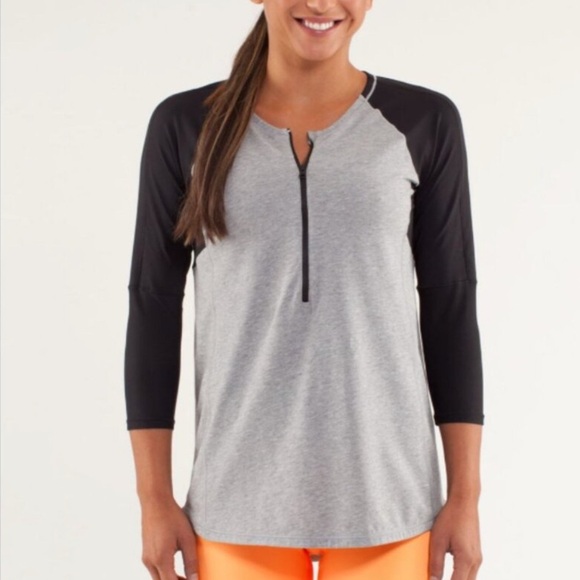 Lululemon Spin City Top Half Zip 3/4 Sleeve Gray Black Color Block Round Neck