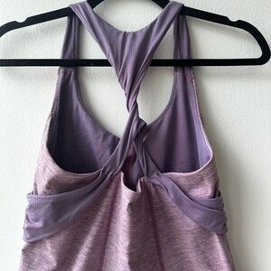 Lululemon Spin Me Tank Top Purple Twist Back Built in Bra Hook Closure Size 6