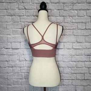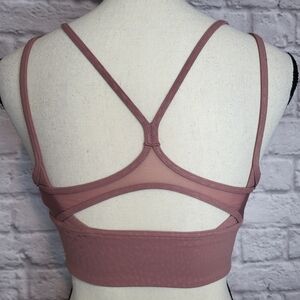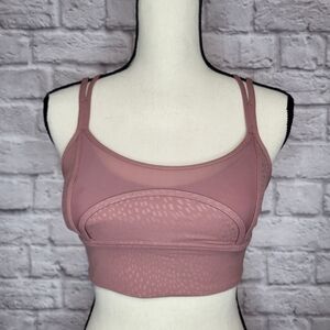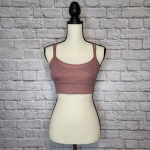 Lululemon sports bra with a strappy back, mesh detail and removable cup inserts.