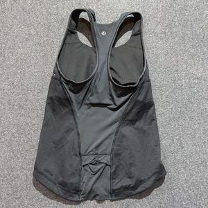 This Lululemon tank top is a versatile piece that will elevate your active wardrobe. With a square neck, Y-back, and racerback straps, this tank top has a sleek and athletic look. The solid black color adds to its versatility, making it easy to pair with any activewear bottoms.