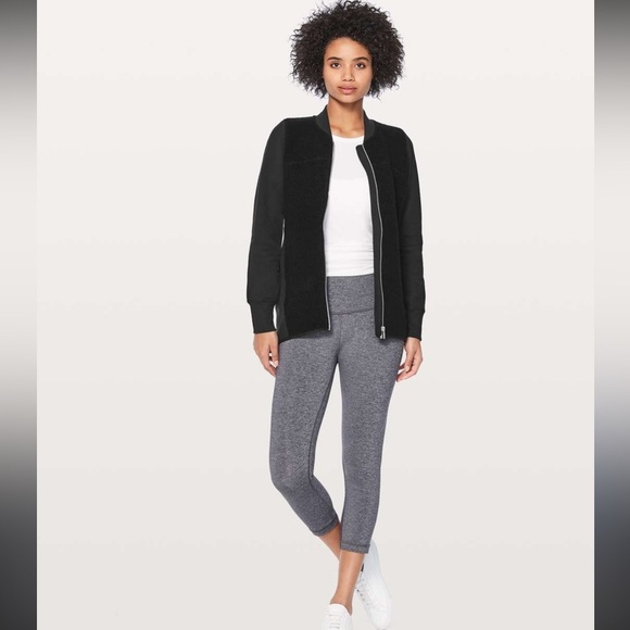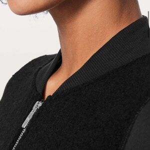 Keywords: sherpa jacket, lululemon fleece, zip-up jacket, women’s athleisure, black activewear, cozy outerwear, cold-weather layering, minimalist style
