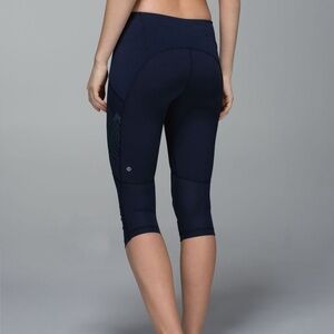 Lululemon Stash It Crop Leggings Reflective with Pockets Blue Run Gym 6/M EUC