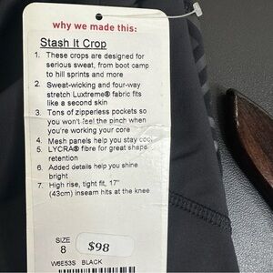 Lululemon Stash It Crop high rise leggings Black size 8