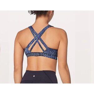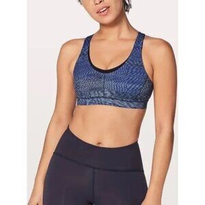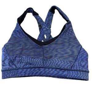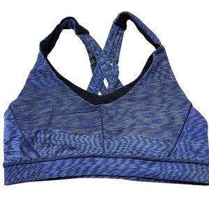 Lululemon Stash N’ Run Sports Bra Size 4 Blue Black Gym Yoga Active Athletic Running