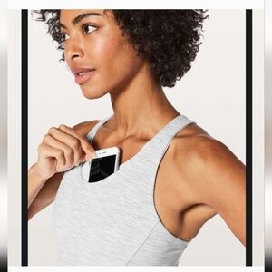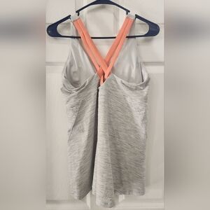 Lululemon gray tank top featuring a chic pink strappy back design. Perfect for both active and casual wear.
