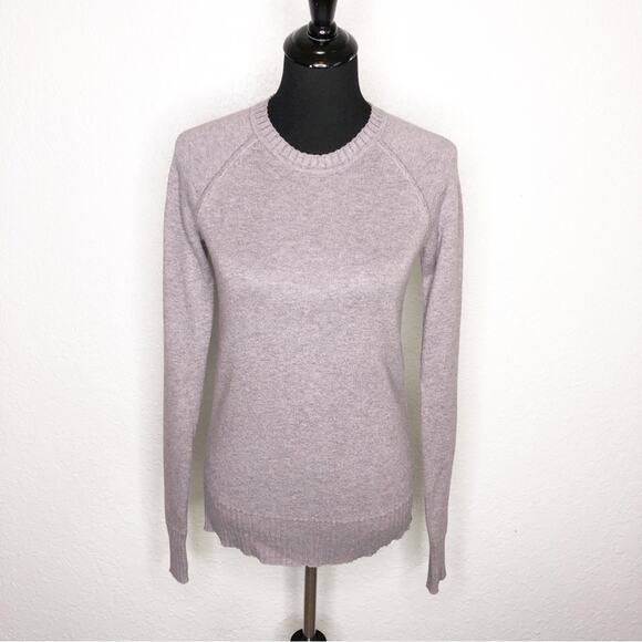 Lululemon Still Lotus reversible heathered frosted mulberry light purple sweater. Pullover style with round neckline. Ribbed hemline and sleeve cuffs. Thumbhole sleeve cuffs. Size tag has been removed but best fits size Extra Small size 2 based on below measurements. Excellent preowned condition. Minor wash wear.