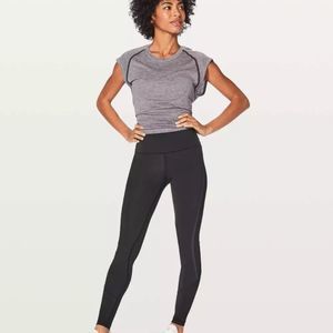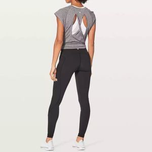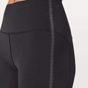 Excellent used condition (worn and washed a handful of times only) Lululemon Stop Drop & Squat Tight size 6 in black. The material is Luxtreme (same as the All the Right Places Pant) and these are high rise with beautiful side feminine details. Cut very similar to the In Movement Tight 28”.