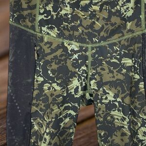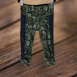 Lululemon Stop At Nothing Crop green Black Floral Reflective Mesh Zip Size 4
