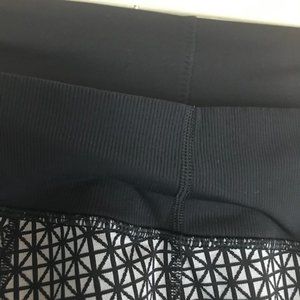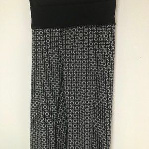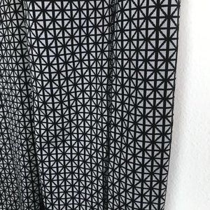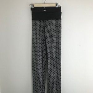 Lululemon Straight-Up Pant in the pattern "Tri Geo Silver Spoon Black". Condition is very good, lightly used with some very light pilling on waistband (pictured), otherwise no visible holes or stains, but the main size tag is missing and I can't find the size any where else so the approximate measurements are listed below: