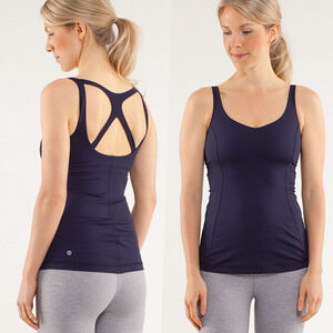 Lululemon Strappy Back Soft Fitted Built-in Bra Tank Navy 4 NWOT
