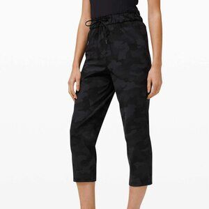 Lululemon Stretch High Rise Crop 23" in Heritage 365 Camo Deep Coal Multi (gray/black camo). Size 12. Luxtreme with buttery-soft Nulu waistband lining. Relaxed fit and higher rise, with pockets and a drawcord that can be worn in or out.