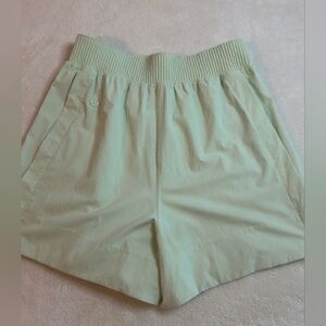 Lightweight • Has a soft crinkle texture • Buttery-soft Nulu™ fabric on the inside of waistband • High Rise, 4" Length • Relaxed fit is roomy through glutes and thighs • Hand pockets with hidden pocket for small items • Side slits at the hem for added mobility • Color: Kohlrabi Green Excellent condition.