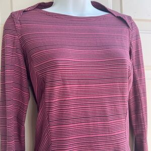 Lululemon Stripe Wine Berry Black Kanto Catch Me LS Thumbhole Slim Rulu Top SZ 6