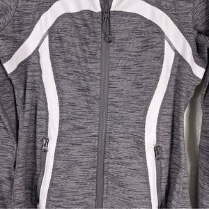 Great, like new condition Lululemon Striped Grey & White Zip Up Work Out Jacket