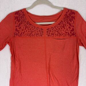 Lululemon Striped Red with Leopard Print Pocket Scoop Neck Tshirt