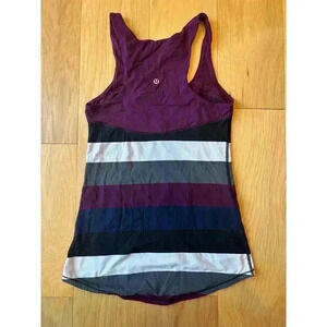 Very good condition lululemon racer back tank. Fitted and stretchy. Striped. Size tag has been removed, but it is a size small.