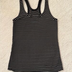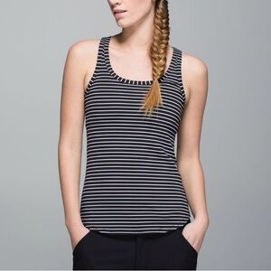 Lululemon Studio Racerback- Parallel Stripe Black White. In great condition but missing size/hang tag seems to be a size 4 or 6. See photos for measurements.