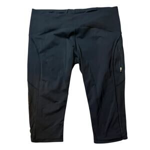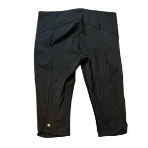 Preowned Lululemon Sun Runner Black 17” Crop Mesh Inserts Leggings size 12