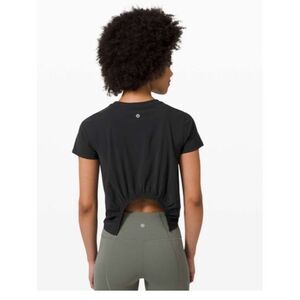 Great condition Lululemon Sunday Sprint black cropped top. Please note: no size tag, so please see measurement pictures.
