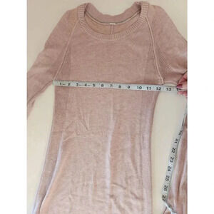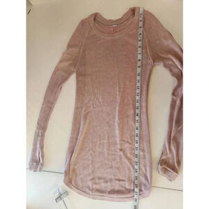 Lululemon Sunshine Coast Long Sleeve Sweater Mink Berry Pink Size 2. There is no size tag, so please check measurements that are in the photos. Pre owned in great condition. This sweater is a longer style, to fit over your bottom. The sleeves have thumb holes.